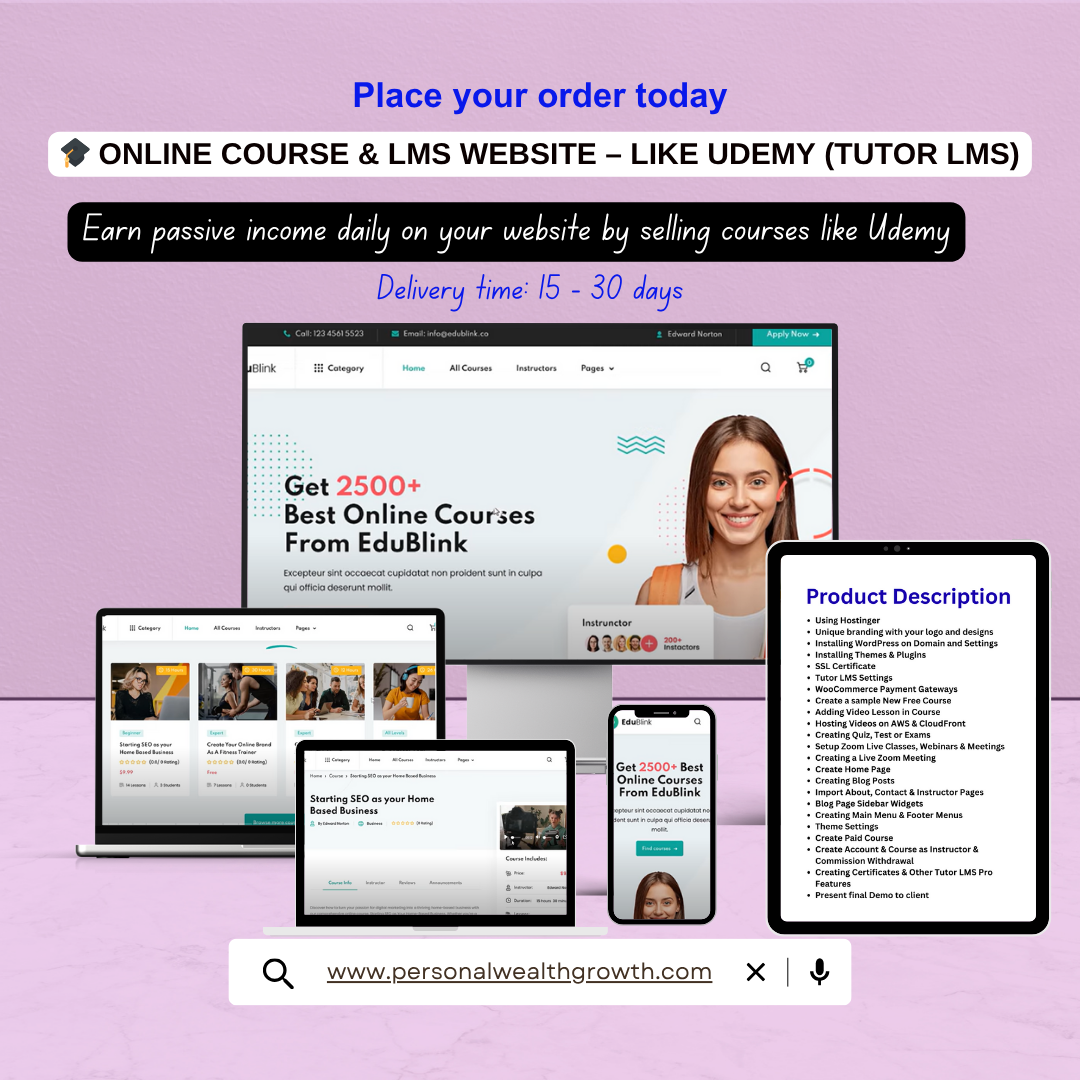 - Blog Website with WordPress – Rank #1 on Google & Earn Passive Income Daily