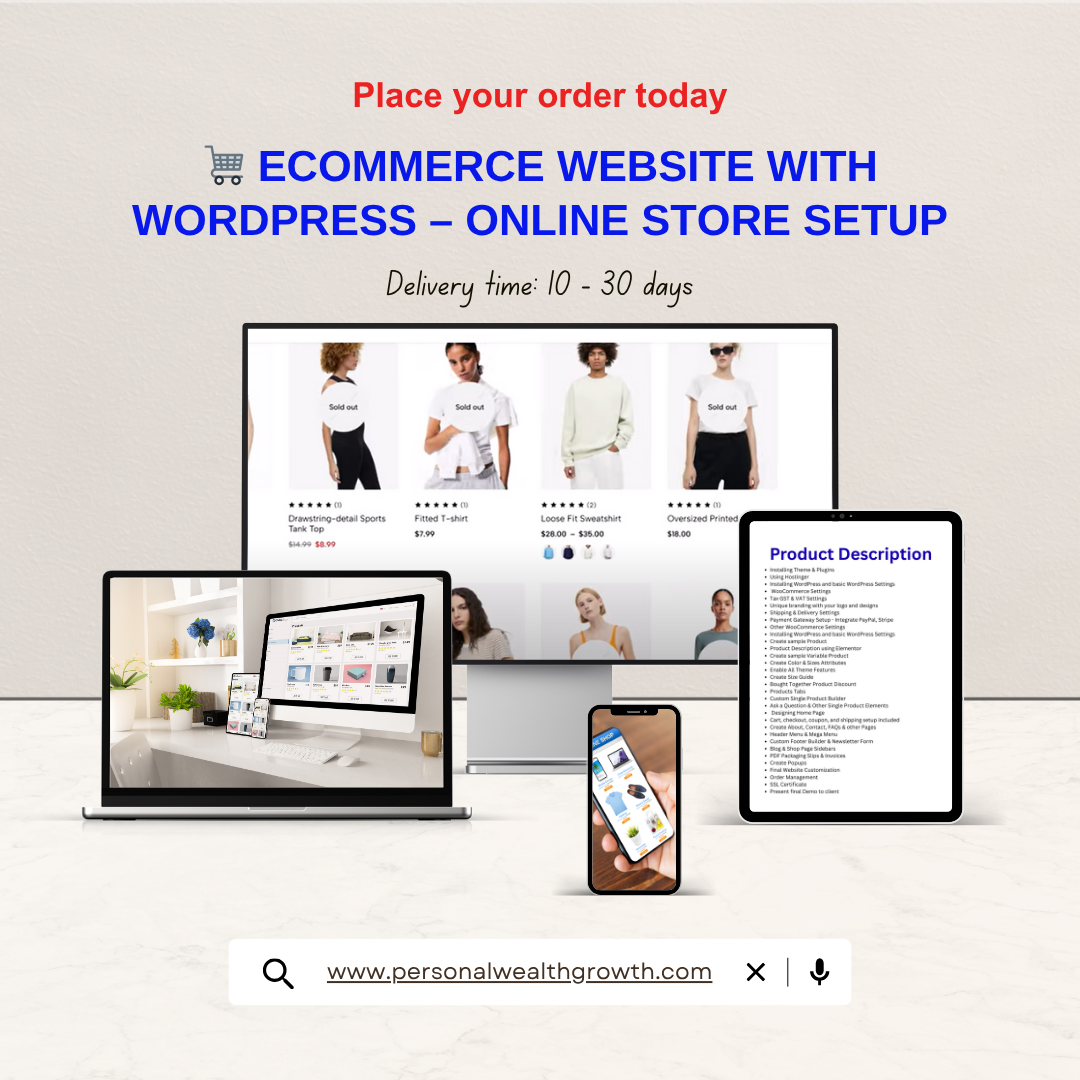 Launch your own powerful and SEO-optimized E-Commerce Website to sell physical products online with WordPress. Perfect for beginners and pros alike, this site is designed to rank on Google, earn through AdSense, affiliate links, and connect you to your customers. Includes user-friendly backend and monetization-ready structure.