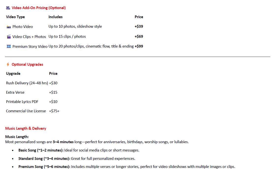 - Don’t worry — if something is unclear, I’ll reach out before finalizing your song